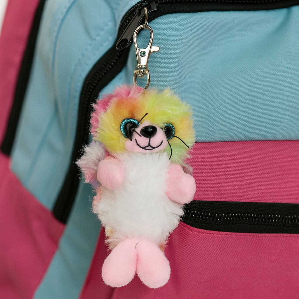 Maskotka foka z brelokiem to niewielka, ale niezwykle urocza przytulanka o długości 15 cm. Jej kolorowe futerko w odcieniach tęczy przyciąga wzrok, a błyszczące, niebieskie oczka nadają jej wyjątkowego charakteru. Wykonana z miękkiego materiału, jest przyjemna w dotyku, a dzięki solidnemu zaczepowi można ją łatwo przypiąć do różnych przedmiotów. To sprawia, że maskotka jest nie tylko zabawką, ale również efektownym gadżetem, który można zawsze mieć przy sobie.