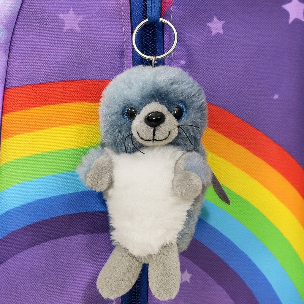 Maskotka foka z brelokiem to niewielka, ale niezwykle urocza przytulanka o długości 15 cm. Jej futerko przyciąga wzrok, a błyszczące, niebieskie oczka nadają jej wyjątkowego charakteru. Wykonana z miękkiego materiału, jest przyjemna w dotyku, a dzięki zaczepowi można ją łatwo przypiąć do różnych przedmiotów. To sprawia, że maskotka jest nie tylko zabawką, ale również efektownym gadżetem, który można zawsze mieć przy sobie.