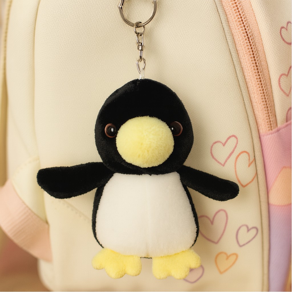 Ta urocza maskotka w kształcie pingwina o wysokości 8 cm to idealny towarzysz codziennych przygód – zarówno dla dzieci, jak i dorosłych. Wykonana z miękkiego, pluszowego materiału w kontrastujących kolorach czerni, bieli i pastelowego żółtego, przyciąga wzrok swoją prostotą i urokiem. Dzięki solidnemu metalowemu karabińczykowi, brelok można bezpiecznie przypiąć do plecaka, torby, kluczy czy piórnika, nadając im odrobinę radości i charakteru.