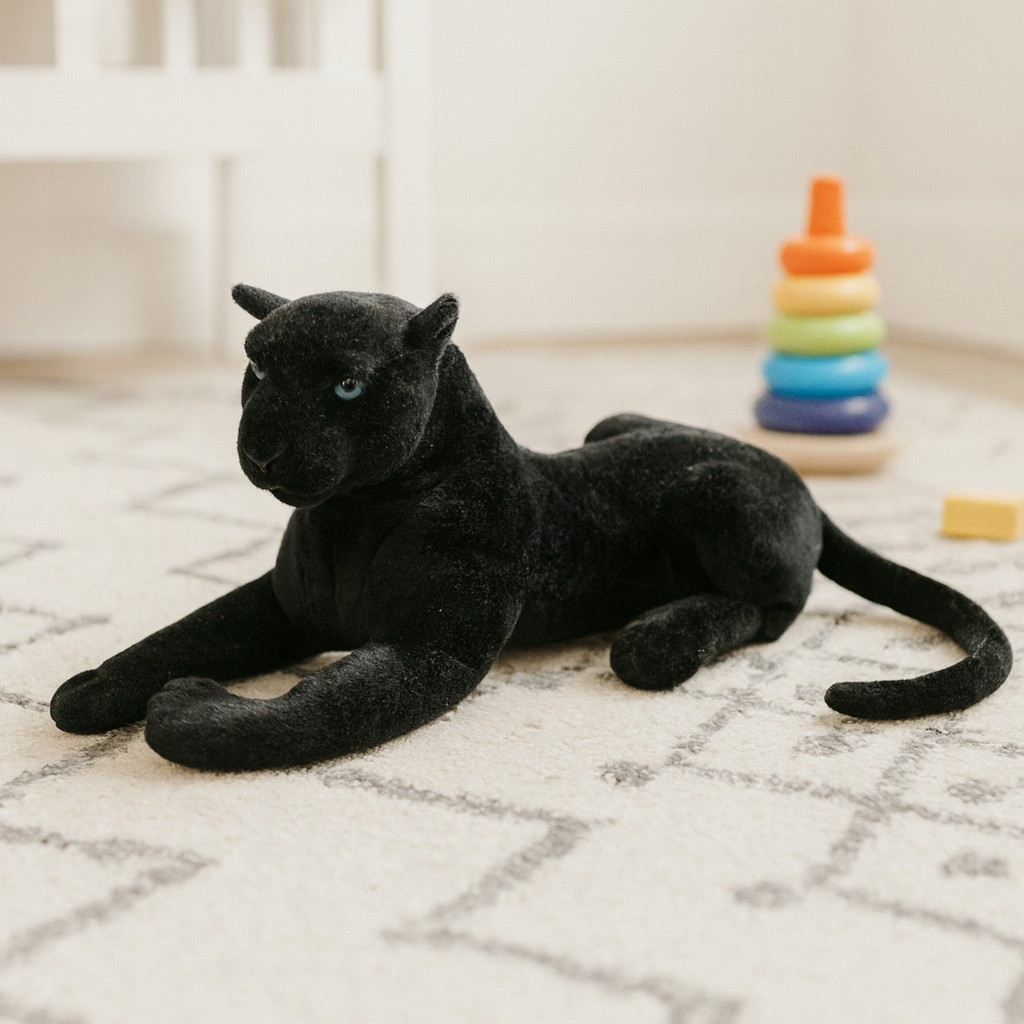 Czarna pantera znakomicie komponuje się w jasnych wnętrzach, szczególnie w salonach i pokojach dziecięcych o pastelowych barwach. Może stać się elementem dekoracyjnym, który podkreśli styl wnętrza, wprowadzając odrobinę tajemniczości i ciepła. Dzięki swojemu eleganckiemu wyglądowi maskotka pasuje nie tylko do pokoju dziecka, lecz także na prezent – na urodziny, święta lub jako niespodzianka dla fanów dzikich kotów.