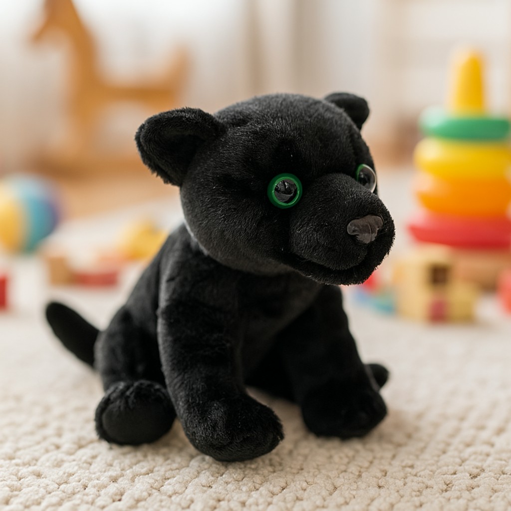 Maskotka czarnej pantery o wysokości 18 cm to wyjątkowy pluszak, który łączy w sobie elegancję i urok. Wykonana z miękkiego, przyjemnego w dotyku materiału w głębokim, czarnym kolorze, wyróżnia się intensywnie zielonymi oczami, które dodają jej charakteru. Starannie wyprofilowany pyszczek i realistyczny kształt sprawiają, że maskotka przyciąga uwagę i może być zarówno ulubioną zabawką dziecka, jak i elementem dekoracyjnym pokoju. Dzięki niewielkiemu rozmiarowi doskonale mieści się w małych rączkach i jest idealna do zabrania w podróż czy na spacer.