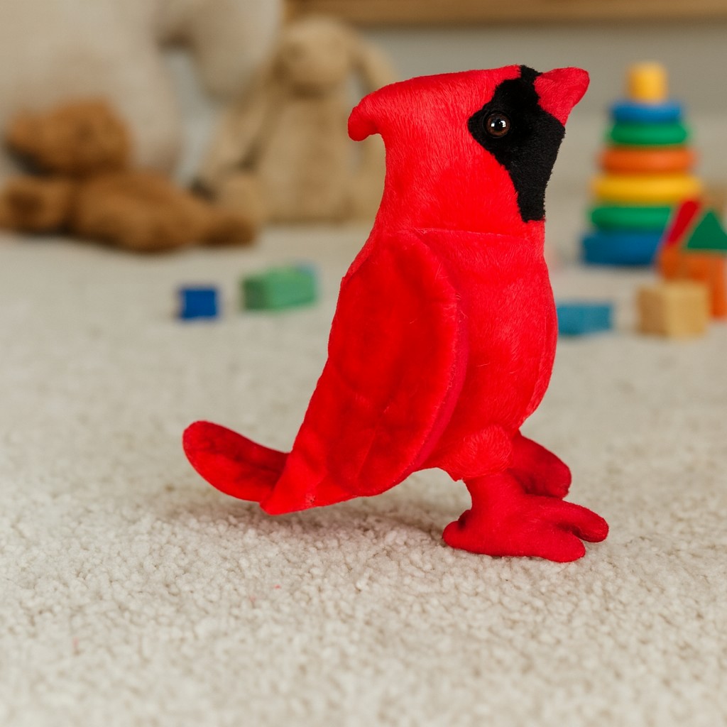 Ta urocza maskotka przedstawiająca czerwonego kardynała to idealny towarzysz dla dzieci i dorosłych ceniących oryginalne, przyjazne pluszaki. Wykonana z miękkiego, przyjemnego w dotyku materiału, przyciąga uwagę intensywną, czerwoną barwą oraz charakterystycznym czarnym akcentem wokół oka – wiernie odwzorowując wygląd prawdziwego kardynała. Jej kompaktowy rozmiar (ok. 16 cm) sprawia, że idealnie mieści się w dziecięcych rączkach, można ją zabrać wszędzie – do przedszkola, na spacer, czy w podróż.