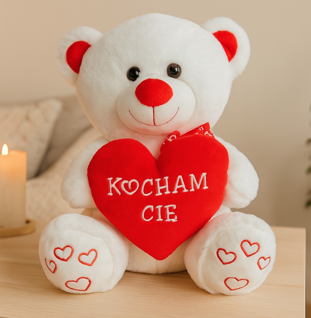 Pluszowy miś z sercem to idealny sposób na wyrażenie uczuć! Ten uroczy biały miś ma 50 cm wysokości i trzyma czerwone serce z napisem „Kocham Cię”. Wykonany z miękkiego, przyjemnego w dotyku materiału, zachwyca starannością wykonania i dbałością o detale – od haftowanych serduszek na łapkach po uśmiechniętą buzię. Doskonały jako prezent na Walentynki, urodziny czy rocznicę – dla ukochanej osoby, dziecka lub przyjaciela. Stanie się wyjątkową pamiątką i ozdobą każdego pokoju. To nie tylko zabawka, ale symbol ciepła, troski i miłości.