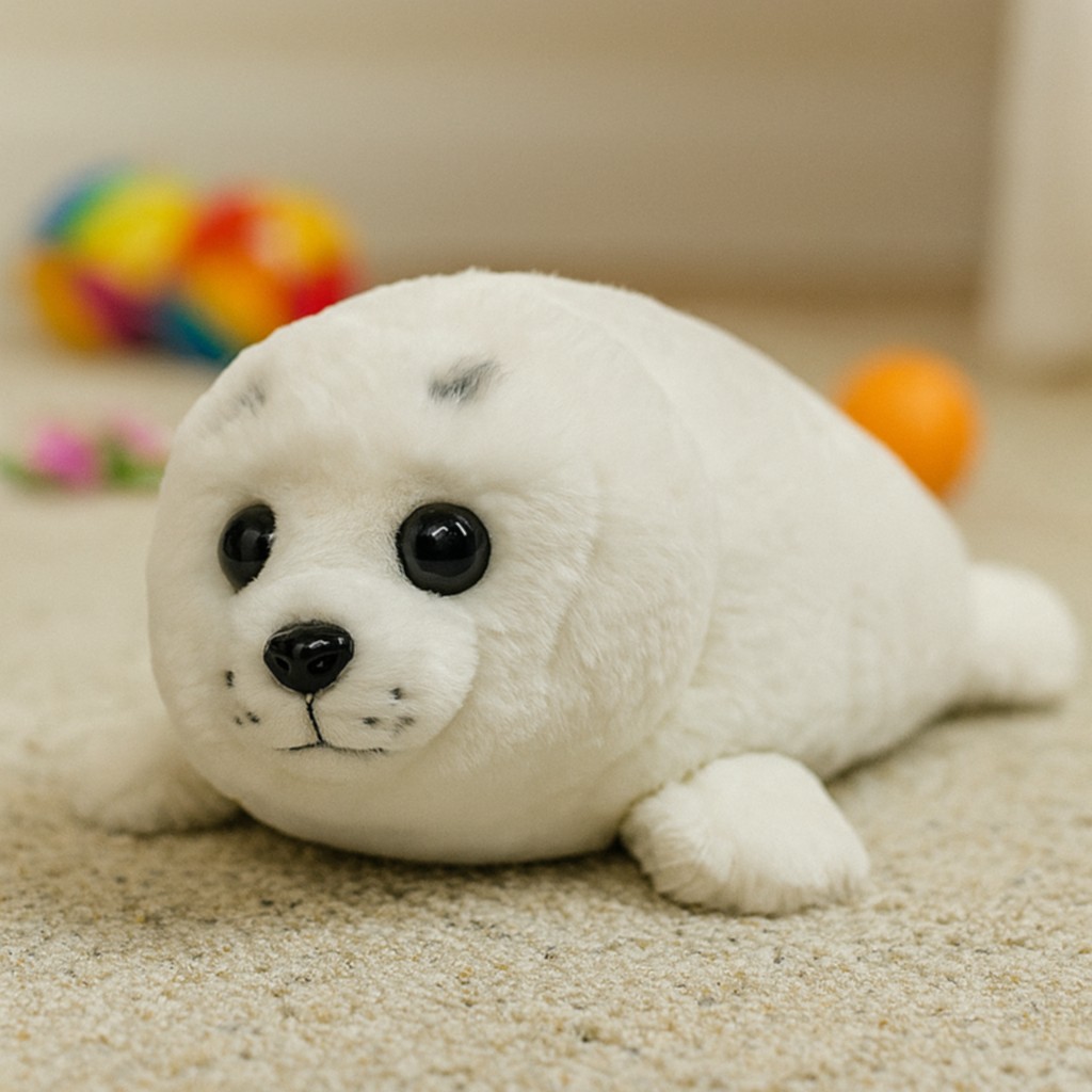 Maskotka foczki o długości 38 cm to idealny towarzysz zabaw i przytulania dla dzieci w każdym wieku. Wykonana z miękkiego, śnieżnobiałego pluszu, zachwyca realistycznym wyglądem – od dużych, błyszczących czarnych oczu po delikatnie zaznaczone wąsiki na pyszczku. Jej przyjazny wyraz twarzy i obłe kształty sprawiają, że budzi sympatię od pierwszego wejrzenia.