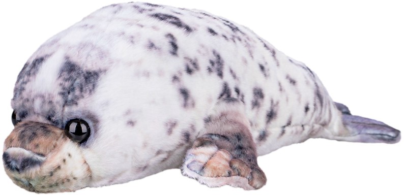 Maskotka foka nakrapiana. Miłe futerko, plastikowe oczy. Wypełnienie: włóknina poliestrowa.