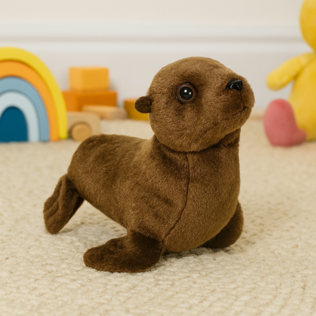 Maskotka brązowej foki o długości 25 cm to uroczy pluszak, który łączy w sobie realistyczny wygląd i przytulny charakter. Wykonana z miękkiego, aksamitnego materiału w ciepłym odcieniu brązu, zachwyca delikatnymi detalami – od zaokrąglonej głowy z błyszczącymi oczami po starannie wyprofilowane płetwy. Jej sympatyczny wyraz pyszczka sprawia, że od razu wzbudza sympatię i chęć przytulenia.