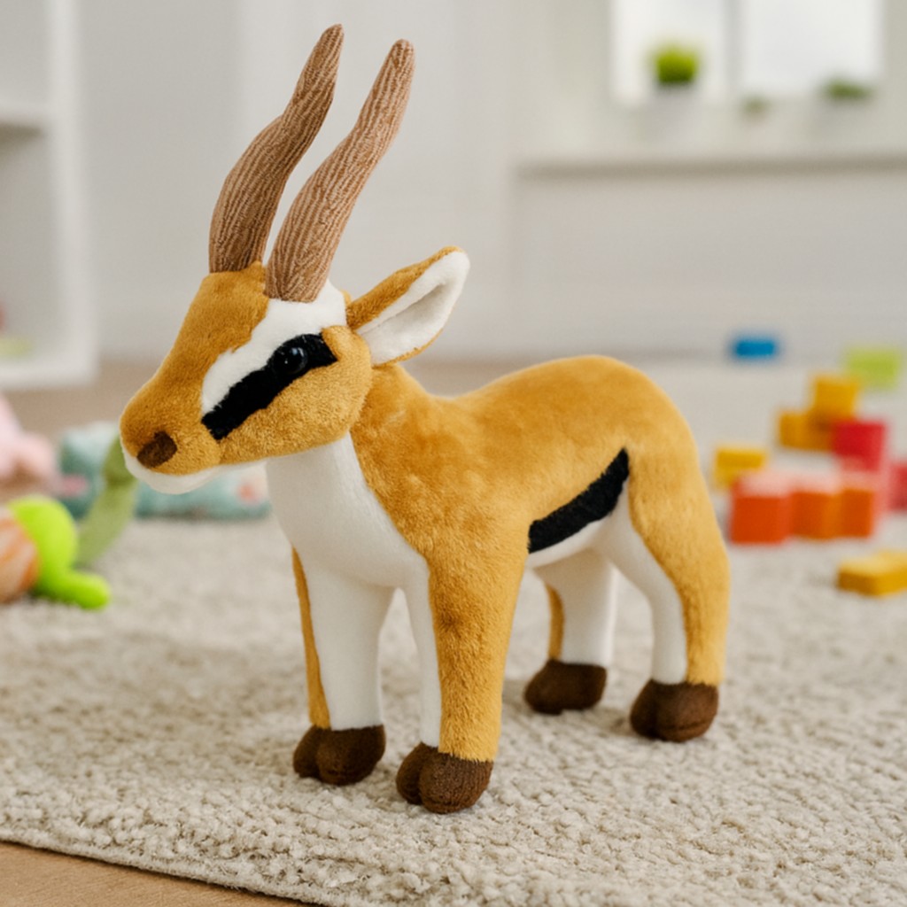 Ta maskotka antylopy o długości 23 cm to elegancka i realistycznie wykonana pluszowa zabawka, która zachwyci małych miłośników dzikiej przyrody. Jej miękki, aksamitny w dotyku plusz w odcieniach złotobrązowym, białym i czarnym doskonale oddaje naturalne umaszczenie zwierzęcia. Wysokie, smukłe rogi oraz wyraźne detale twarzy dodają jej charakteru, a przyjazny wyraz pyska czyni ją odpowiednią także dla najmłodszych dzieci.