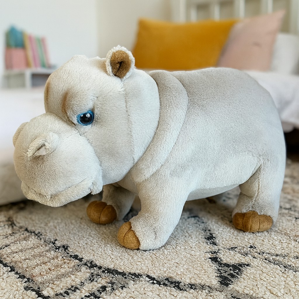 Zadbano o każdy detal – od starannie wyprofilowanego pyszczka, przez sympatyczne uszka, aż po kontrastujące, brązowe łapki. Dzięki stabilnej konstrukcji hipcio świetnie prezentuje się również jako dekoracja dziecięcego pokoju. Zabawka została zaprojektowana z myślą o bezpieczeństwie najmłodszych – nie zawiera małych, odpadających elementów i spełnia normy jakościowe.