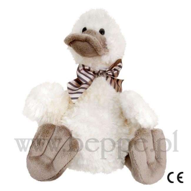 Wspaniała, miękka przytulanka - kaczuszka która ponoć przynosi szczęście. Pluszak bardzo starannie wykończony, uszyty z dobrej jakości pluszu. Szyję ma przewiązaną ozdobną wstążeczką.