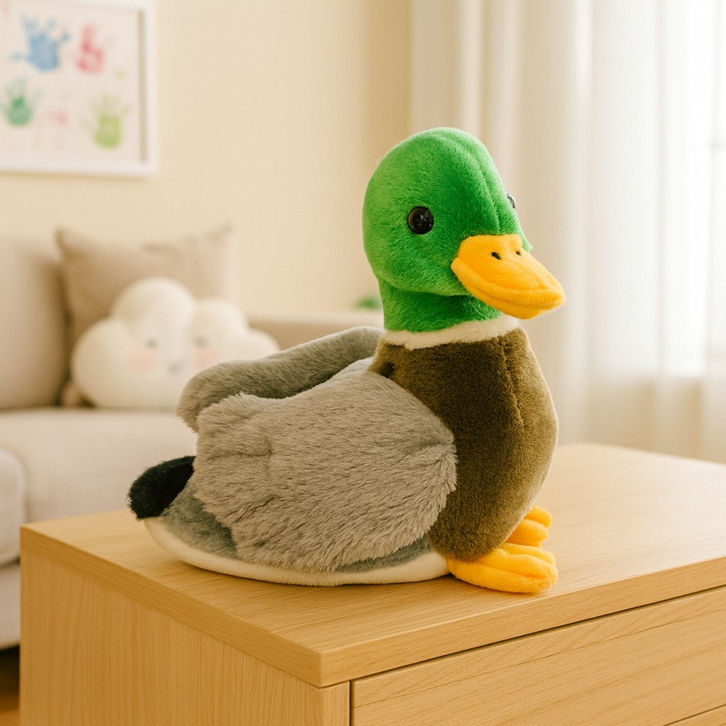 Oto nasza rozkoszna pluszowa kaczka, która potrafi rozjaśnić nawet najbardziej pochmurny dzień! Jej intensywnie zielona główka, miękkie szare skrzydełka i puszyste brązowe piórka sprawiają, że wygląda jak żywa, a jednocześnie jest cudownie przytulna. To maskotka, która wprowadza w świat natury, radości i… kaczych przygód! Idealna zarówno dla maluchów, jak i starszych dzieci, które uwielbiają miękkich, sympatycznych przyjaciół.