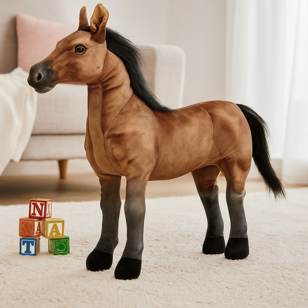 Poznaj uroczego pluszowego konika arabskiego – niezwykle realistyczną maskotkę, która skradnie serca dzieci i dorosłych! Wykonana z miękkiego, przyjemnego w dotyku pluszu, zachwyca naturalnym wyglądem i ciepłymi kolorami. Ten uroczy końek stanie się wiernym towarzyszem zabaw, nauki oraz odpoczynku. Idealnie sprawdzi się jako prezent dla dziecka, które kocha zwierzęta i marzy o własnym koniu.