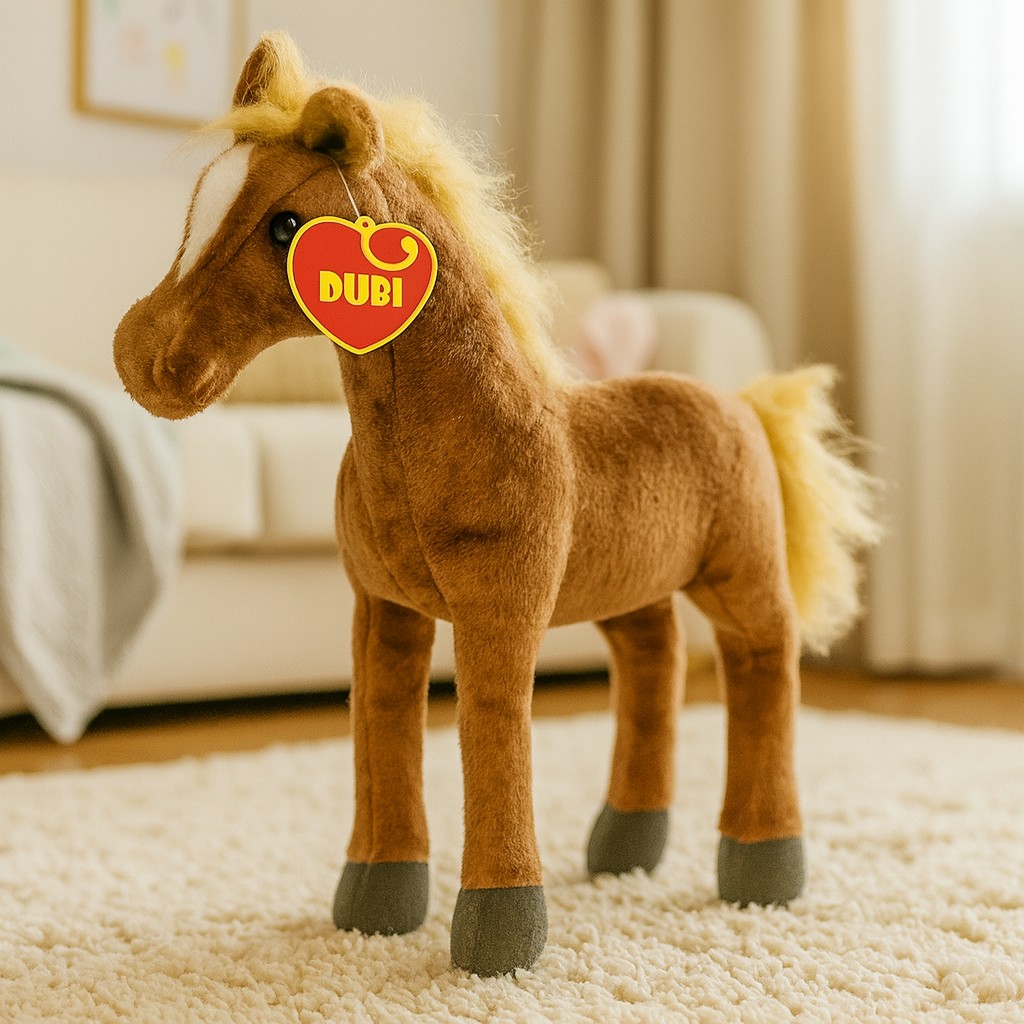 Poznaj uroczego konika, który skradnie serce każdego małego miłośnika zwierząt! Ten mięciutki, brązowy pluszak z puszystą grzywą i ogonem wygląda, jakby właśnie wybiegł z dziecięcej bajki. Wykonany z przyjemnego w dotyku, trwałego pluszu, stanie się wiernym towarzyszem codziennych przygód – od spokojnych drzemek po pełne energii zabawy. Dubi jest lekki, przyjazny i gotowy na każdy dziecięcy pomysł – a tych, jak wiadomo, nigdy nie brakuje!