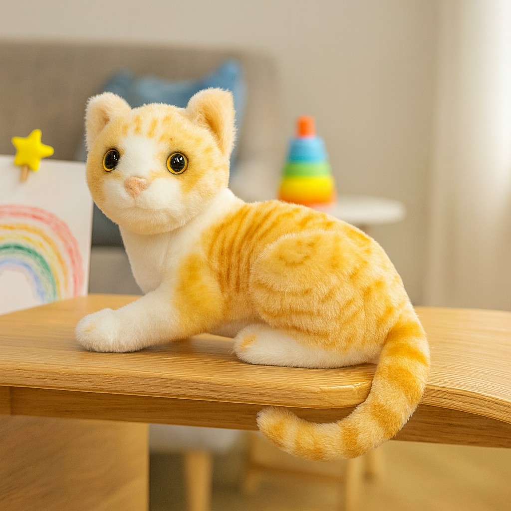 Poznaj uroczego pluszowego kotka, który podbije Twoje serce swoim słodkim spojrzeniem i puszystym futerkiem! Ten mały, kremowo-rudy przyjaciel wygląda, jakby właśnie przyszedł po porcję głaskania i przytulania. Jest idealny dla dzieci, które kochają zwierzęta i marzą o własnym pupilu, a także dla dorosłych, którzy chcą wnieść do swojego domu odrobinę ciepła i uśmiechu.