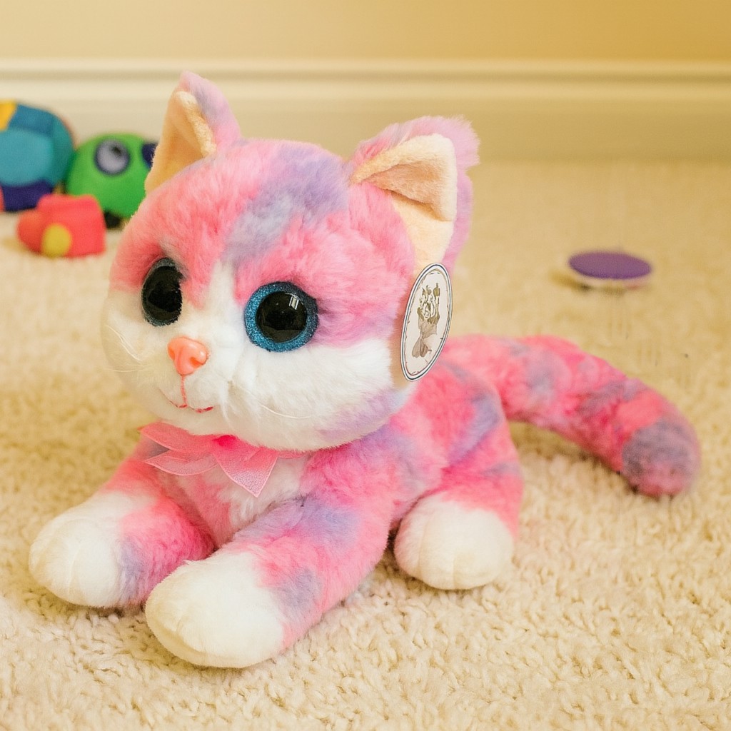 Przeurocza pluszowa maskotka kotka z puszystym ogonem.