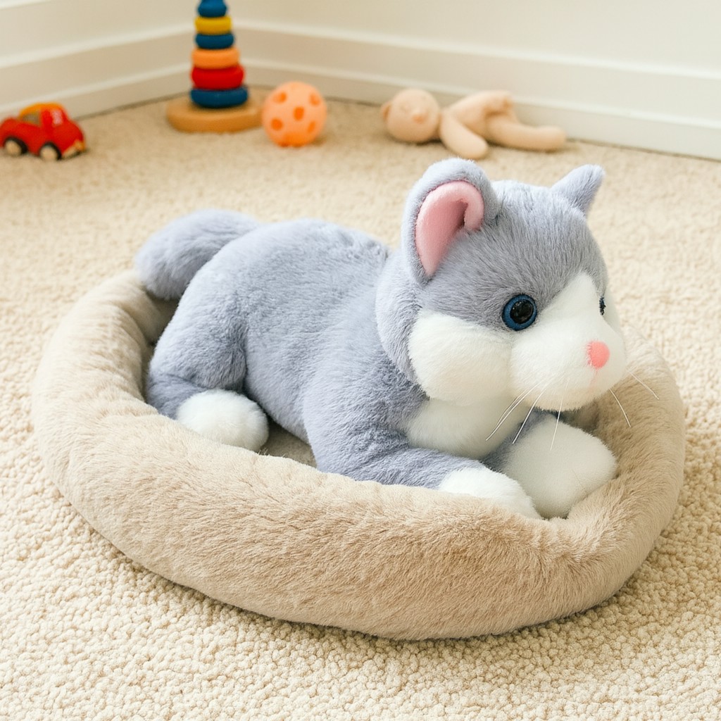 Ta pluszowa maskotka – miękki kotek w legowisku – to prawdziwy strzał w dziesiątkę dla każdego malucha, który marzy o własnym zwierzaku. Dzięki swojemu realistycznemu wyglądowi i przyjaznym oczom kotek szybko staje się ulubionym przyjacielem dziecka. A co najlepsze – nie trzeba sprzątać kuwety ani martwić się o drapanie mebli!