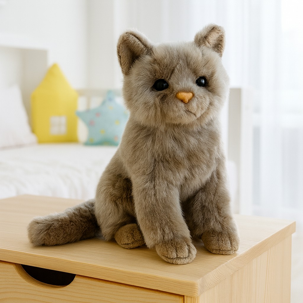 Poznaj uroczego, szarego kotka, który rozczuli każdego miłośnika zwierząt! Ten puszysty kociak to idealna maskotka dla dzieci, które marzą o własnym pupilu – bez obowiązku sprzątania kuwety i bez porannych pobudek na karmienie! Wykonany z wyjątkowo miękkiego pluszu, nasz kotek zachwyca realistycznym wyglądem i delikatnym futerkiem, które aż prosi się o głaskanie.