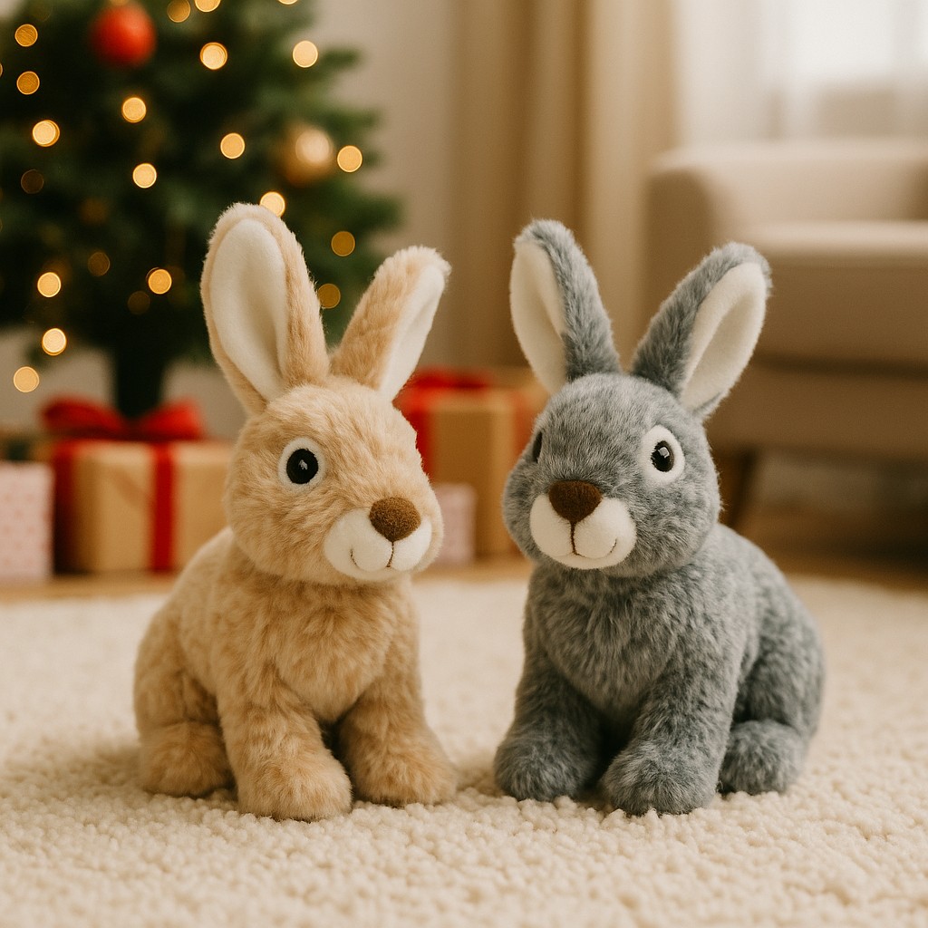 Króliczki mogą „skakać” po dywanie, „podgryzać” marchewki z zestawu zabawek kuchennych lub „chować się” w dziecięcym domku. Ich miękkość i uroczy wygląd sprawiają, że staną się ulubionymi bohaterami codziennych zabaw i wiernymi towarzyszami snu.