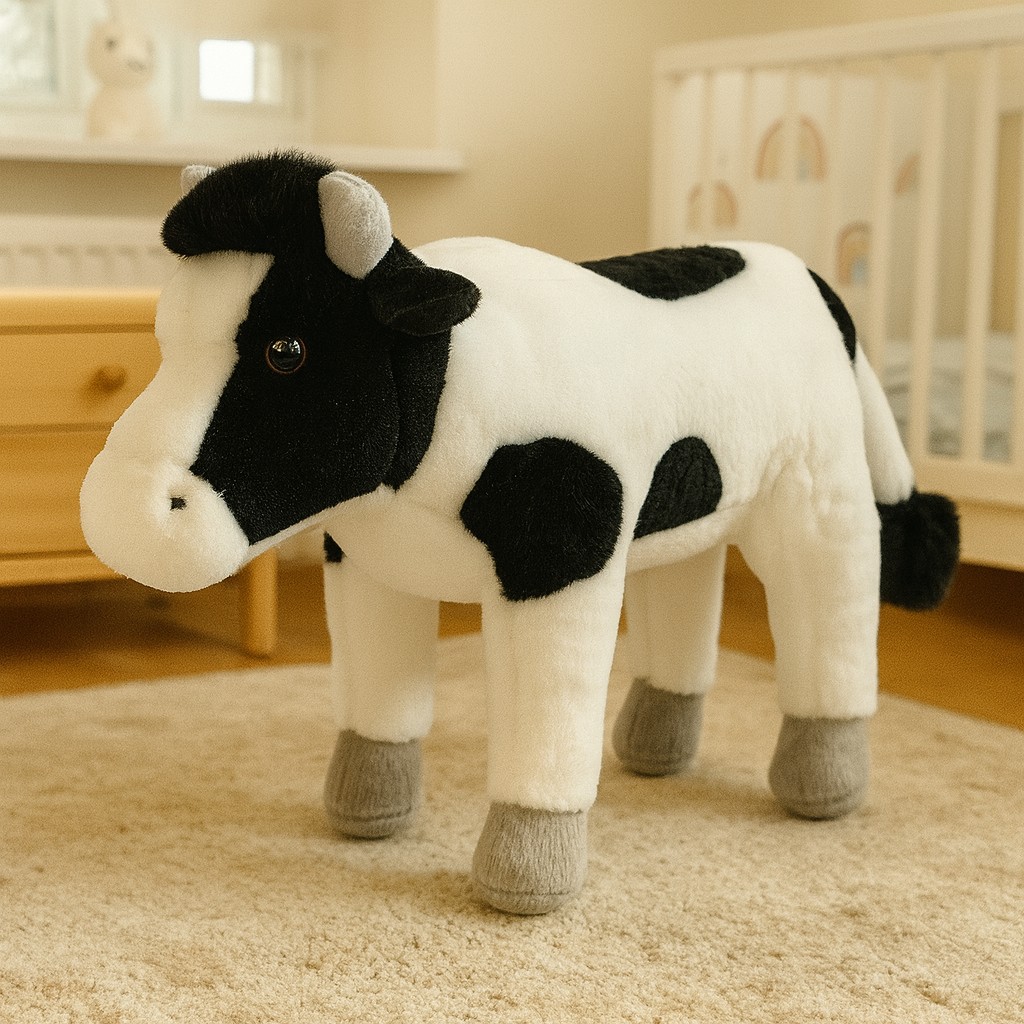 Poznaj uroczą mieszkankę pluszowej farmy – czarno-białą krówkę, która wprowadzi do Twojego domu mnóstwo radości, śmiechu i ciepła! Ta mięciutka przytulanka z delikatnym futerkiem i bystrymi oczkami wygląda jak prawdziwa, tylko że… dużo bardziej przytulaśna! Idealna dla dzieci, które kochają zwierzątka i wiejskie klimaty.