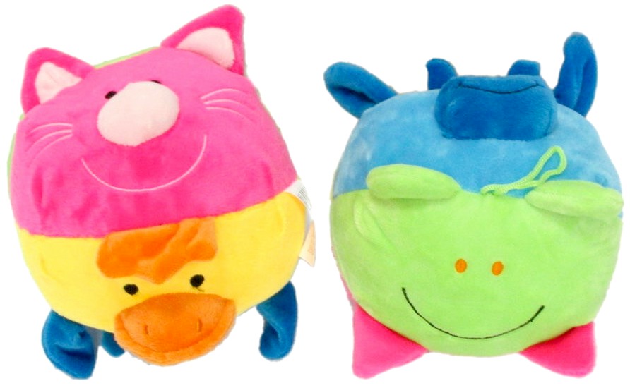 Małe, ciekawa pluszowa kula z mixem 4 zwierzątek: kaczuszką, żabką, kotkiem i krówką.