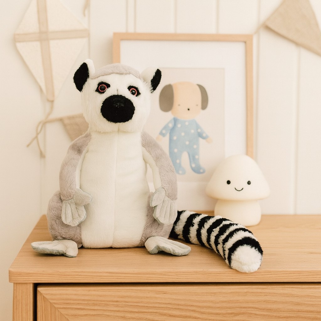 Lemur to nie tylko maskotka, ale też świetny towarzysz codziennych zabaw. Może zostać bohaterem dziecięcych teatrzyków, towarzyszem w podróży samochodem lub wiernym przyjacielem do zasypiania. Dzieci uwielbiają wymyślać dla niego historie – może być piratem poszukującym banana-skarbu, detektywem tropiącym zaginione klocki lub uczestnikiem herbatki z innymi pluszakami.