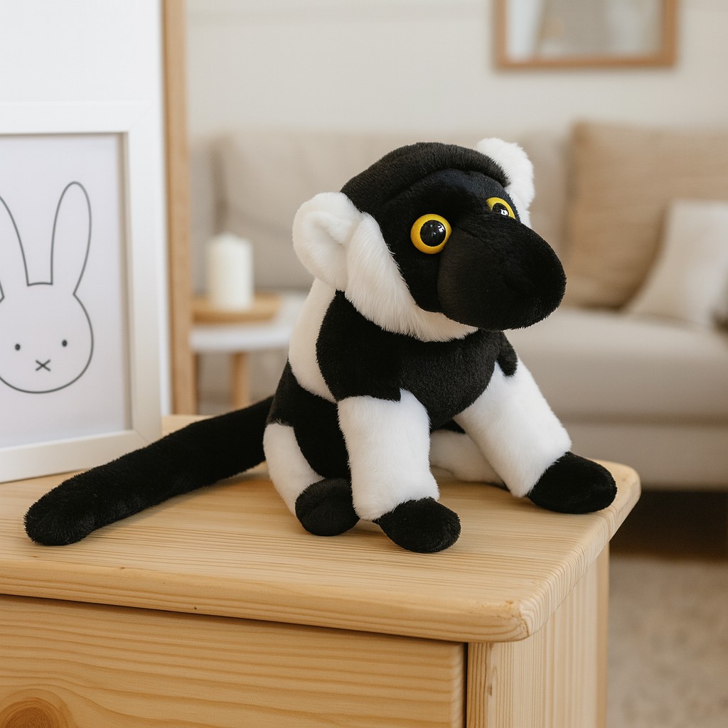 Poznaj niezwykłego pluszowego lemura – mięciutkiego, czarno-białego przyjaciela, który rozkocha w sobie każde dziecko (i nie tylko!). Ta wyjątkowa maskotka zachwyca realistycznym wyglądem inspirowanym prawdziwym lemurem katta, a jej ogromne, błyszczące oczy budzą sympatię już od pierwszego wejrzenia. Wykonana z wysokiej jakości, bezpiecznych materiałów, jest idealna zarówno do codziennej zabawy, jak i do przytulania przed snem.