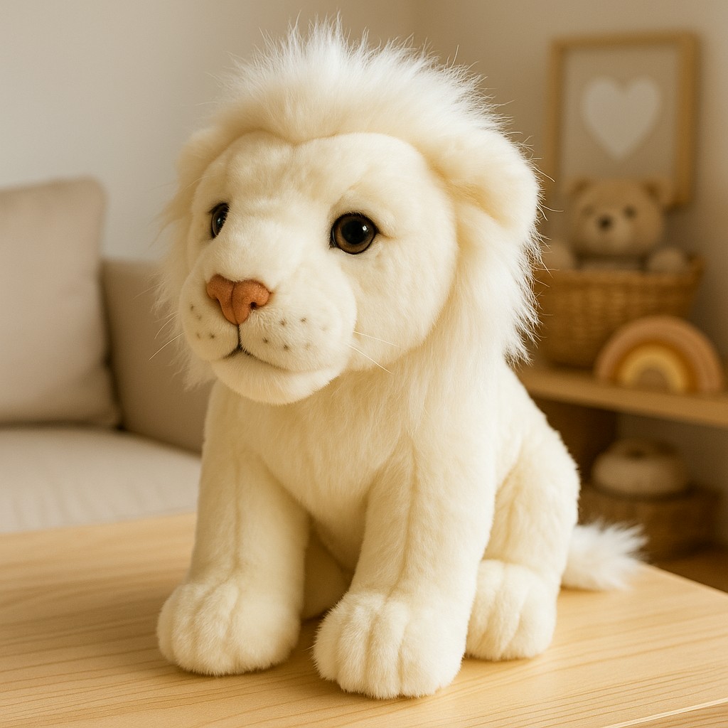 Poznaj majestatycznego, a jednocześnie niezwykle uroczego białego lwa pluszowego, który zachwyci każdego małego odkrywcę! Jego miękkie, kremowe futerko i puszysta grzywa sprawiają, że aż chce się go przytulić. Ten pluszowy lew to doskonały towarzysz codziennych zabaw, snu i wspólnego odpoczynku.