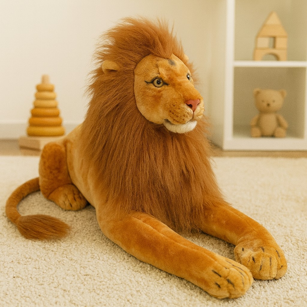 Poznaj niezwykłego pluszowego lwa o długości 100 cm, który już na pierwszy rzut oka robi ogromne wrażenie! Dzięki swojej majestatycznej grzywie i dumnemu spojrzeniu, ten pluszak szybko stanie się królem każdego dziecięcego pokoju. Miękki, przytulny i wyjątkowo realistyczny – sprawi, że poczujesz się jak na prawdziwym safari, nie wychodząc z domu.