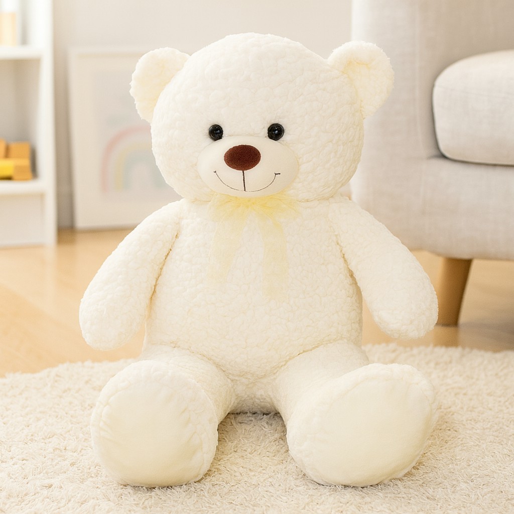 Miś został wykonany z najwyższej jakości, certyfikowanych materiałów, które są w pełni bezpieczne dla dzieci. Jego delikatne futerko nie uczula, a solidne szycie zapewnia trwałość nawet po wielu godzinach zabawy. Pluszak jest lekki, dzięki czemu maluch może go łatwo przenosić z pokoju do pokoju – albo zabrać ze sobą w podróż. Duże, białe łapki i śliczna kokardka dodają mu elegancji i uroku, dzięki czemu idealnie sprawdzi się również jako prezent na urodziny, Dzień Dziecka czy Boże Narodzenie.
