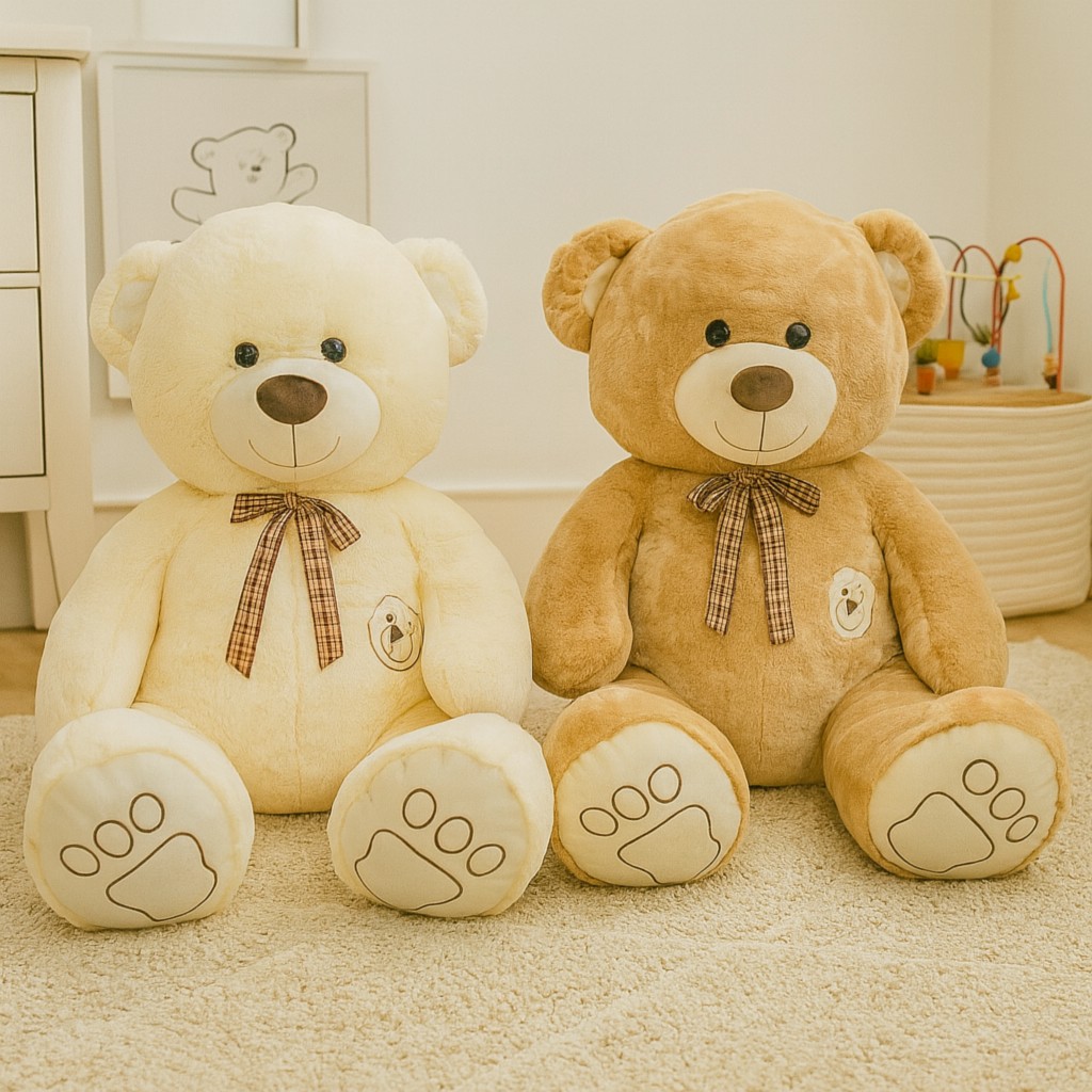 Poznaj naszego ogromnego, mięciutkiego misia XXL – prawdziwego króla przytulania! Ten uroczy pluszak to nie tylko zabawka, ale też najwspanialszy przyjaciel, strażnik snu i kompan codziennych przygód. Dostępny w dwóch kolorach – kremowym i miodowym – zachwyca przyjaznym pyszczkiem, dużymi łapkami z haftowanymi poduszkami i elegancką kokardką w kratkę. Już sam jego widok wywołuje uśmiech od ucha do ucha!