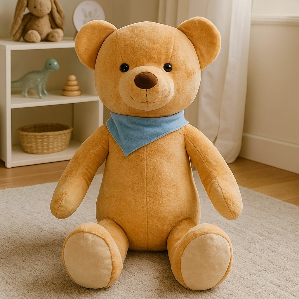 Poznaj uroczego pluszowego misia giganta, który wprowadzi do każdego domu ciepło, radość i mnóstwo przytulnych chwil! Ten mięciutki przyjaciel to idealny towarzysz zabaw, drzemek i codziennych przygód dzieci. Wykonany z delikatnego, miłego w dotyku pluszu, sprawia, że trudno się z nim rozstać. Jego klasyczny brązowy kolor i urocza niebieska chustka dodają mu wyjątkowego uroku – to maskotka, która podbije serca zarówno maluchów, jak i dorosłych.
