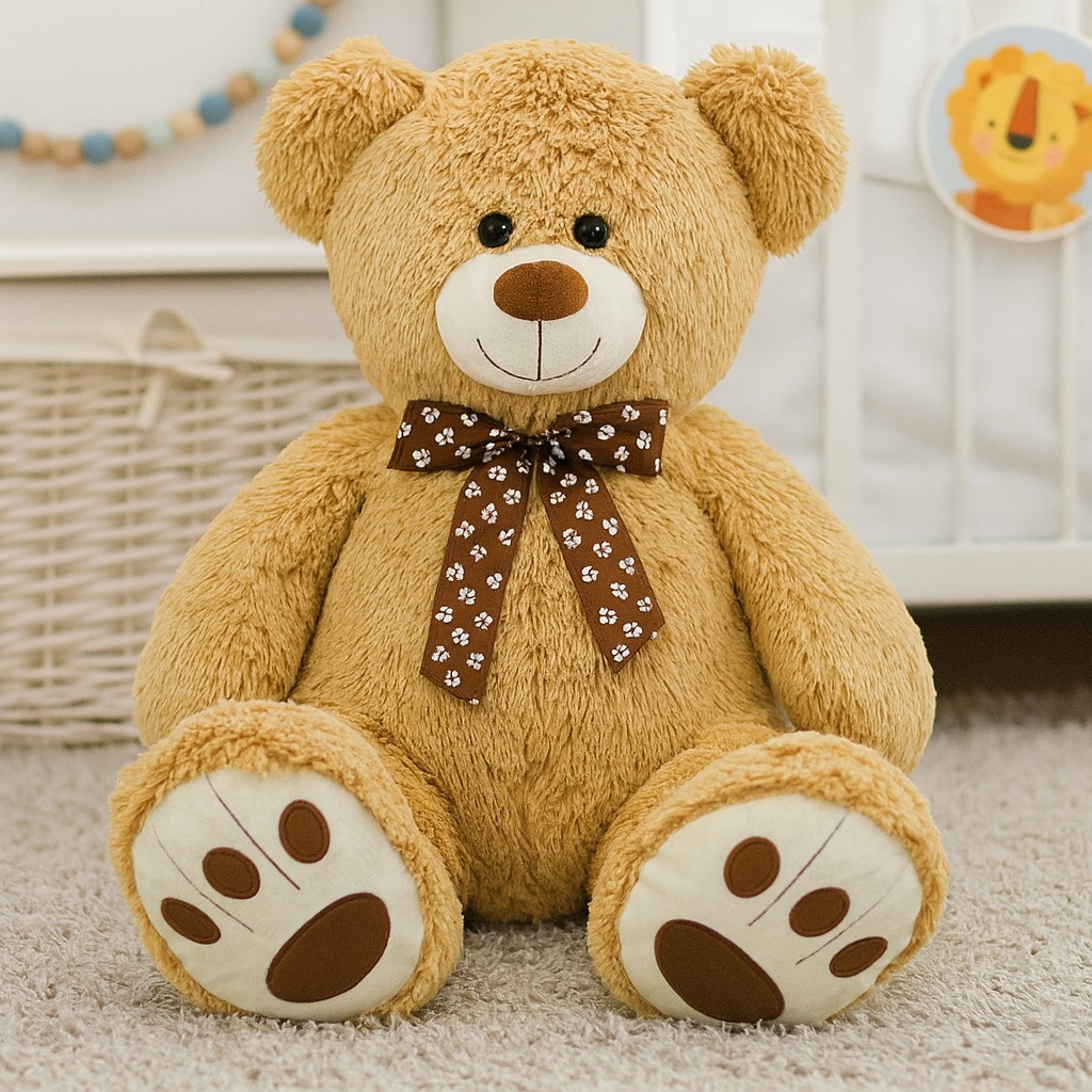 Miś zachwyca głębokim, ciepłym brązowym kolorem, który dodaje mu klasy i przytulności. Puszyste łapki pokryte są kontrastującym odcieniem beżu, dodającym charakteru, natomiast przyjazny wyraz twarzy sprawia, że zaraz chce się go przytulić. Całość została zaprojektowana z dbałością o każdy szczegół – od lekko zaokrąglonych uszu po miękkie futerko – dzięki czemu maskotka wygląda jak najlepszy przyjaciel gotowy do wspólnych chwil.