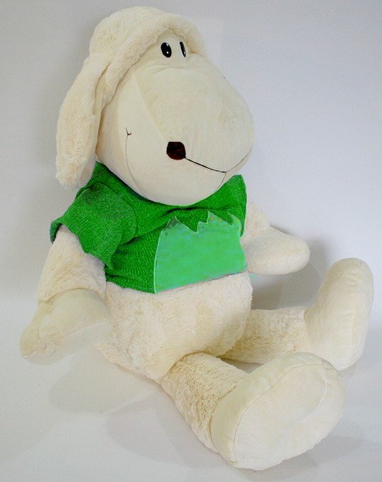 Śmieszna maskotka o wielkości całkowitej 95cm, siedząc 65cm. Pluszak ma bardzo miłe futerko.