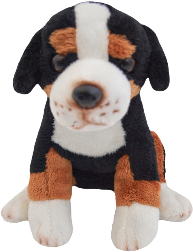 Pluszowy pies pasterski tricolor siedzący. Wykonany z wysokiej jakości mięciutkiego pluszu.