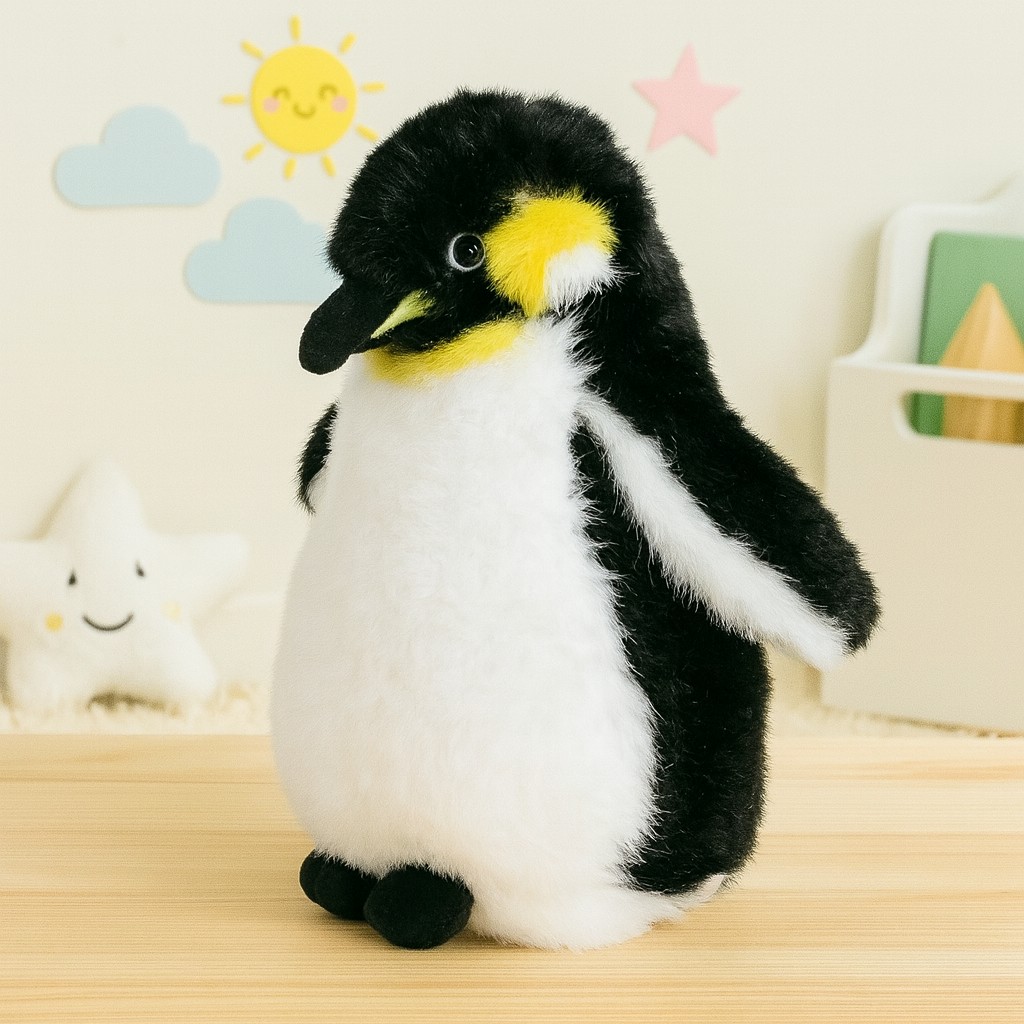 Poznaj uroczego pluszowego pingwina, który przybył prosto z lodowej krainy, by wnieść do Twojego domu mnóstwo ciepła i radości! Ten sympatyczny ptaszek o mięciutkim futerku i błyszczących oczkach to idealny towarzysz zabaw, drzemek i dziecięcych przygód. Jego przyjazny uśmiech i puchata sylwetka sprawiają, że nie sposób mu się oprzeć – nawet jeśli nie lubisz zimy!