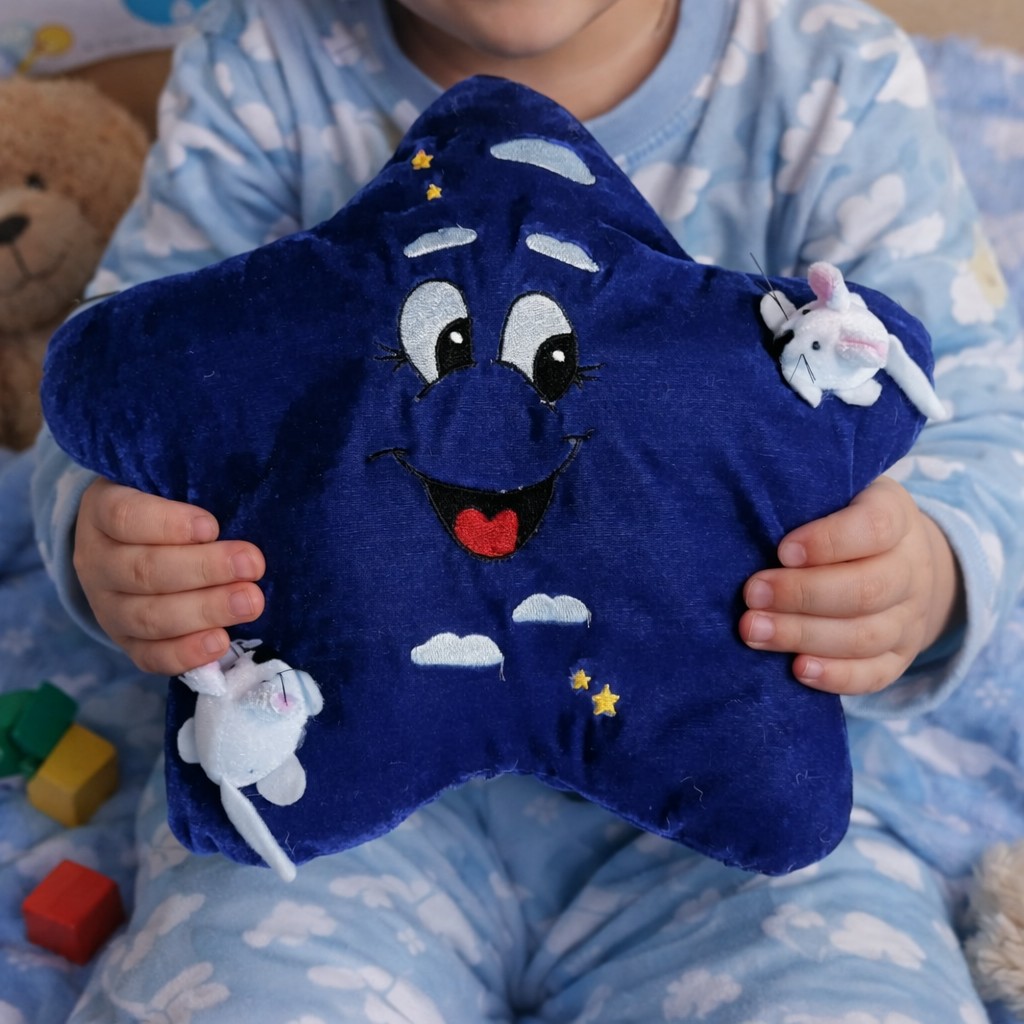 Pluszowa gwiazdka została zaprojektowana z myślą o dzieciach – jest miękka, lekka i wygodna do przytulania. Jej ergonomiczny kształt sprawia, że doskonale dopasowuje się do rączek dziecka, a delikatne wypełnienie zapewnia komfort podczas snu i relaksu. Niedoskonałości i naturalne krzywizny materiału nadają jej autentycznego, przytulnego charakteru, który wyróżnia ją na tle standardowych maskotek.