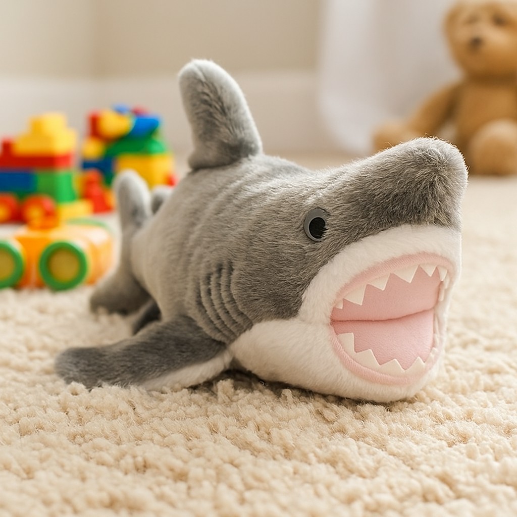 Pluszowy rekin o długości 26 cm to doskonałe połączenie miękkości i drapieżnego charakteru, które zachwyci każde dziecko. Choć jego otwarta paszcza z rzędem białych zębów może wyglądać groźnie, maskotka jest całkowicie przyjazna i niezwykle urocza. Wykonana z wysokiej jakości, miękkiego pluszu w odcieniach szarości i bieli, idealnie nadaje się do przytulania i zabawy.