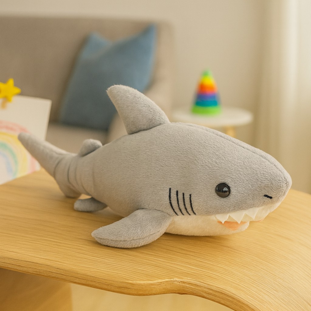 Poznaj naszego niezwykłego pluszowego rekina – miękkiego drapieżnika, który zamiast straszyć, rozczula! Ten sympatyczny morski stwór udowadnia, że rekiny też potrafią być przytulne. Z jego puszystym, szarym futerkiem i uroczym uśmiechem stanie się najlepszym towarzyszem zabaw, drzemek i dziecięcych przygód.