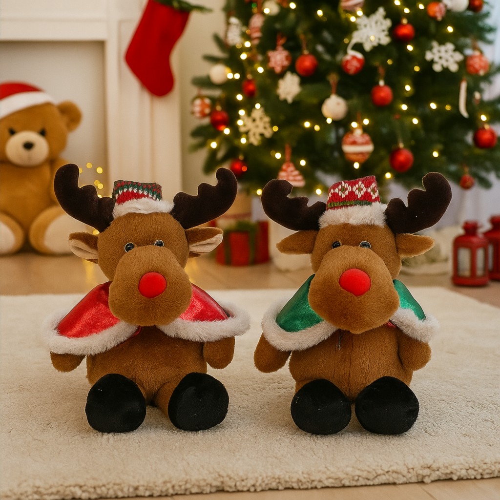 Wprowadź do swojego domu magię Świąt z naszymi uroczymi reniferami – miękkimi, puszystymi i pełnymi ciepła! Ta świąteczna maskotka renifera z czerwonym nosem to idealny prezent dla dzieci i dorosłych, którzy kochają bożonarodzeniową atmosferę. Dostępna w dwóch wersjach kolorystycznych pelerynek – czerwonej i zielonej – doda blasku każdej zimowej aranżacji.