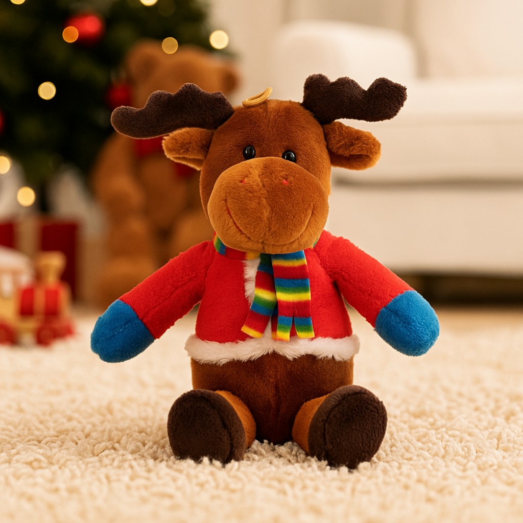 🦌 Pluszowy Renifer w Świątecznym Stroju – Uroczy Towarzysz Zimy!