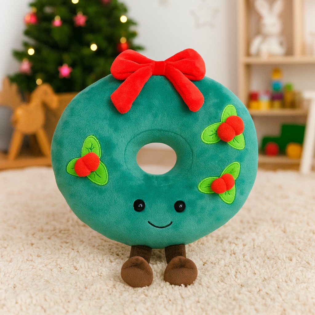 Świąteczny wianek to doskonały upominek pod choinkę, na Mikołajki czy po prostu jako wesoła niespodzianka w grudniowy wieczór. To maskotka, która łączy w sobie świąteczny klimat i funkcjonalność – sprawdzi się zarówno jako dekoracja pokoju, jak i ulubiony pluszowy przyjaciel.