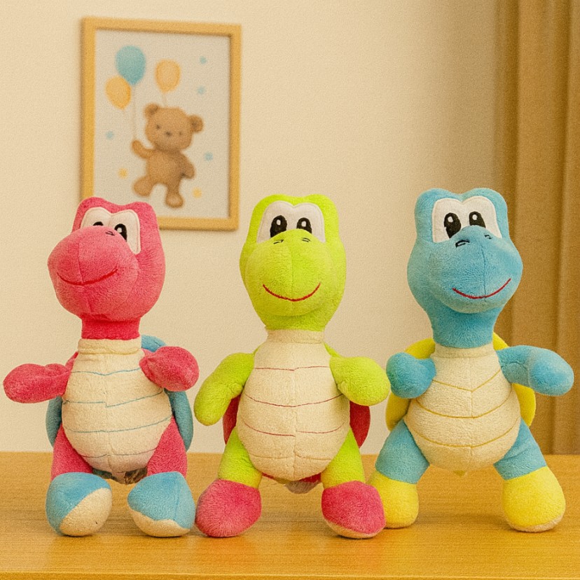 Maskotka żółwia w wersji niemowlęcej - posiada wbudowaną mechaniczną pozytywkę. Maskotka dostępna w 3 kolorach. Cena za sztukę. Wielkość: 25cm.